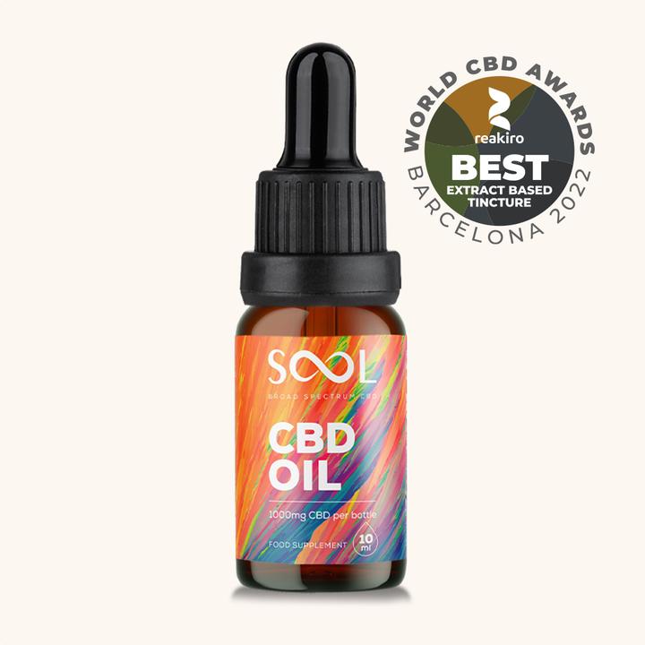 Aceite SOOL CBD 10% (1000 mg) en formato 10 ml, pensado para integrar el CBD en tu rutina diaria con una dosificación cómoda por gotas. Extracto broad spectrum elaborado a partir de cáñamo de alta calidad y base de aceite de semilla de cáñamo.