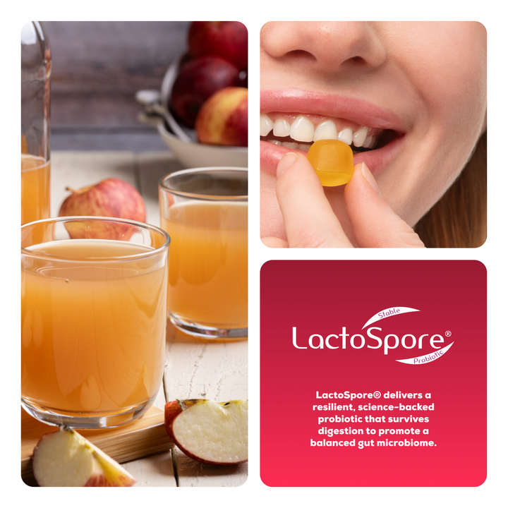 - Con ACV, B-vitaminas, cromo y Lactospore® (probióticos).