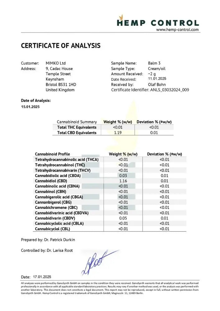 - Extracto: Full Spectrum (THC ≤0,2% – etiqueta del fabricante).