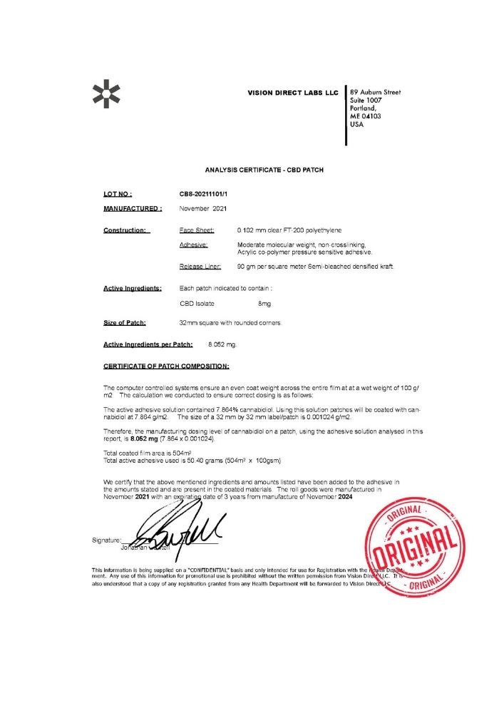- CBD por parche: 8 mg.